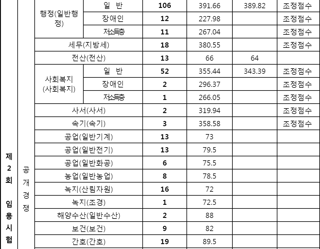 - 일반행정 9급: 391.66(양성평등: 389.82)