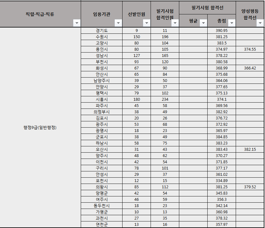 합격자발표(공개경쟁임용) | 합격자 발표 | 공개 경쟁임용 | 공무원 임용시험 | 뉴스 | 경기도청