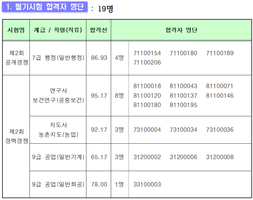 2020년도 서울특별시 지방공무원 제 3회 공개경쟁(7급) 및 경력경쟁 임용 필기시험 합격선(커트라인) (0) | 2021.01.02 |