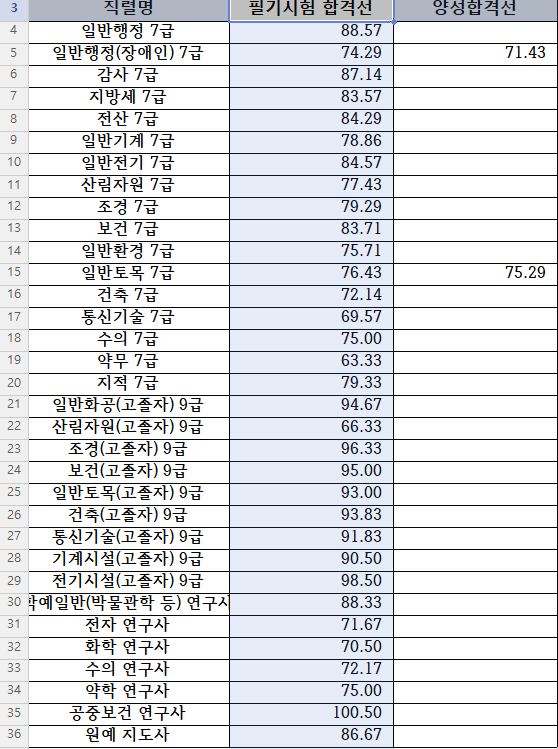 2020년 제2회 경기도 공개경쟁임용(7급) 필기시험 합격선(커트라인) (0) | 2021.01.02 |