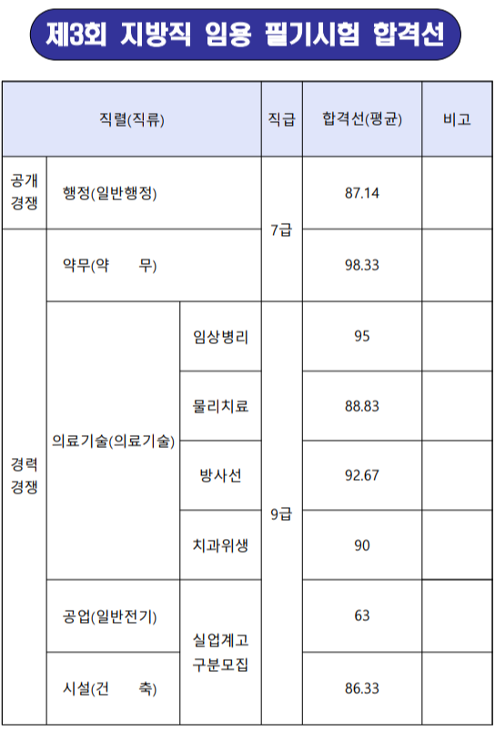 2020년도 서울특별시 지방공무원 제 3회 공개경쟁(7급) 및 경력경쟁 임용 필기시험 합격선(커트라인) (0) | 2021.01.02 |