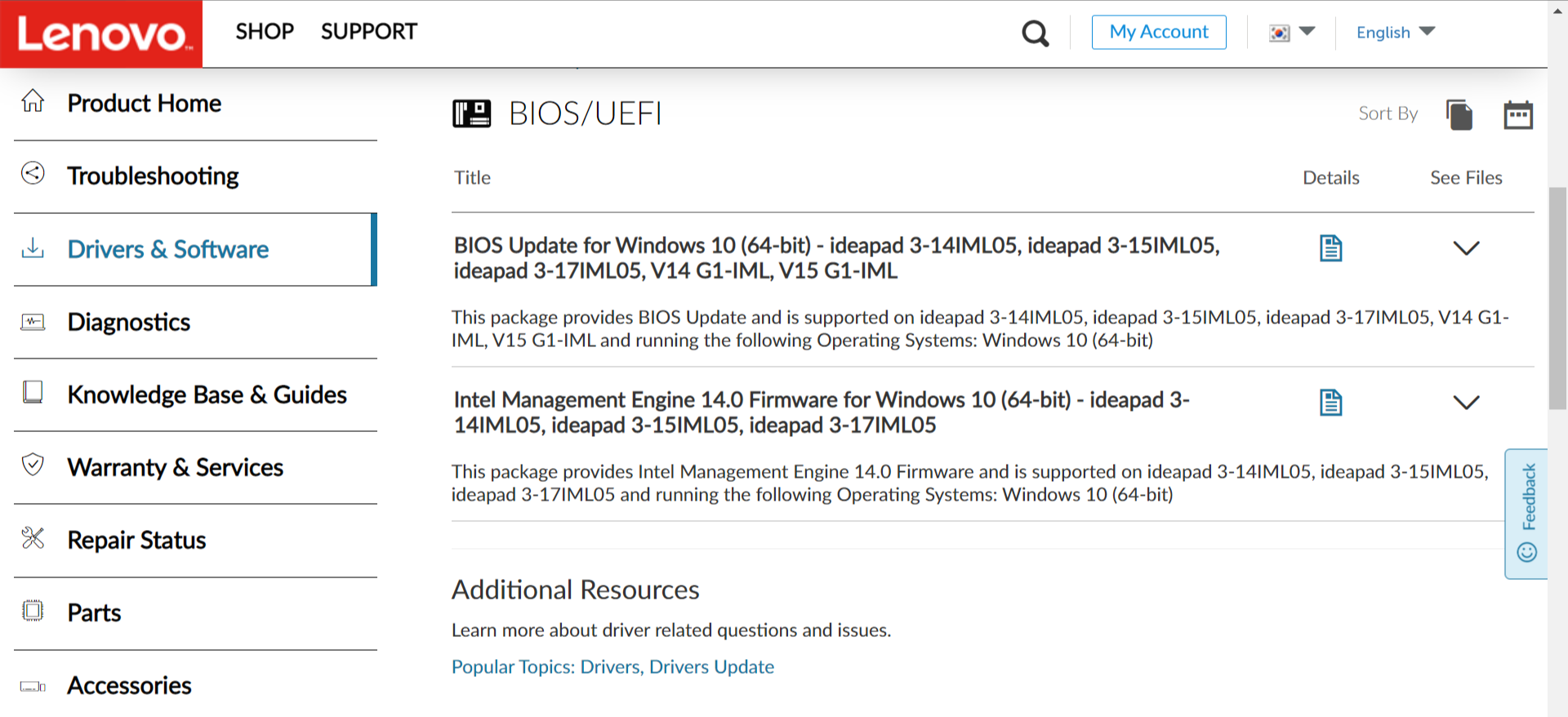 [레노버 고객지원 사이트 바로가기] laptops and netbooks :: 3 series :: ideapad 3 15iml05 - Lenovo Support KR