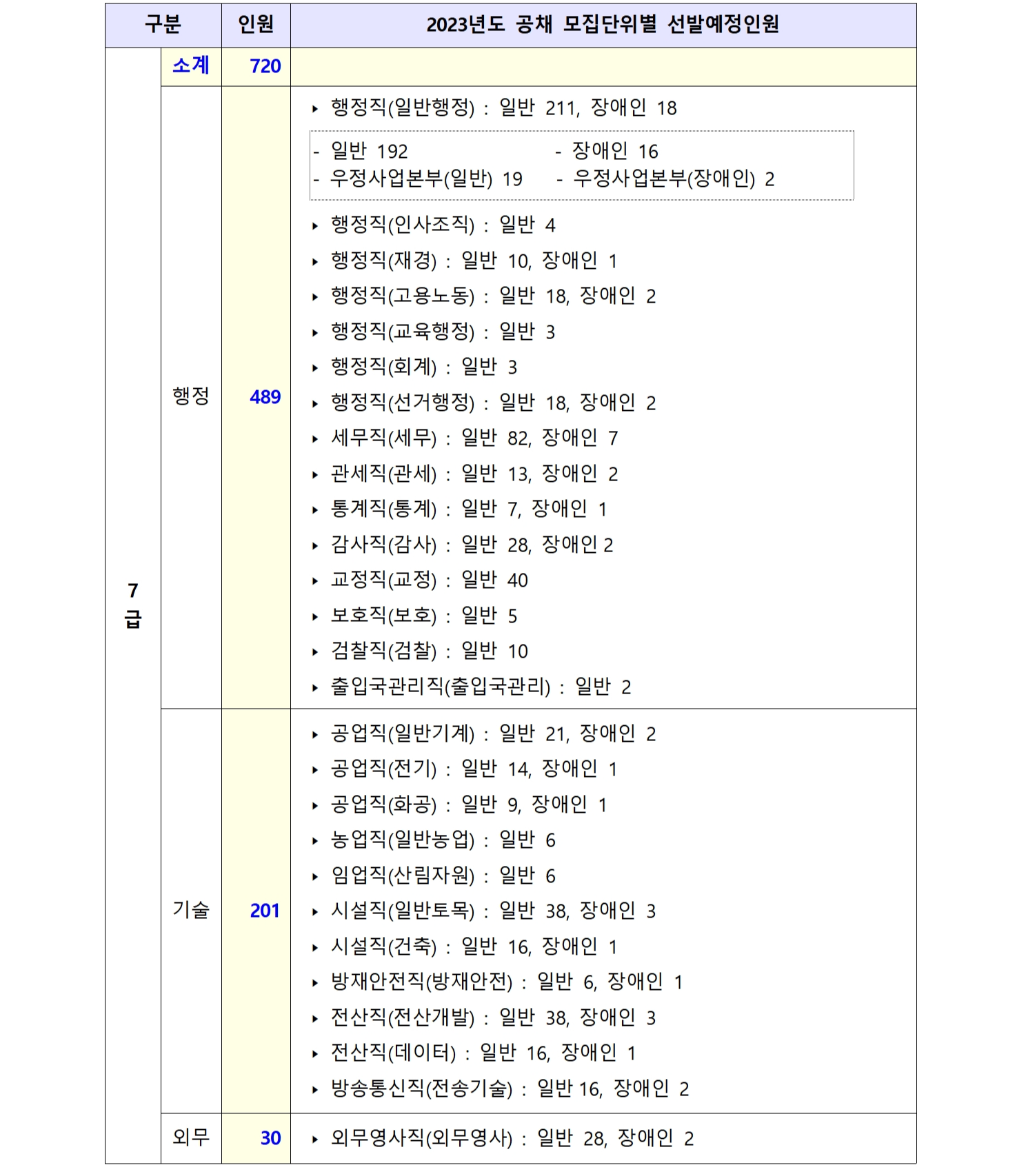 2023년도 국가직 공무원(5급, 7급, 9급) 공채 선발인원입니다.