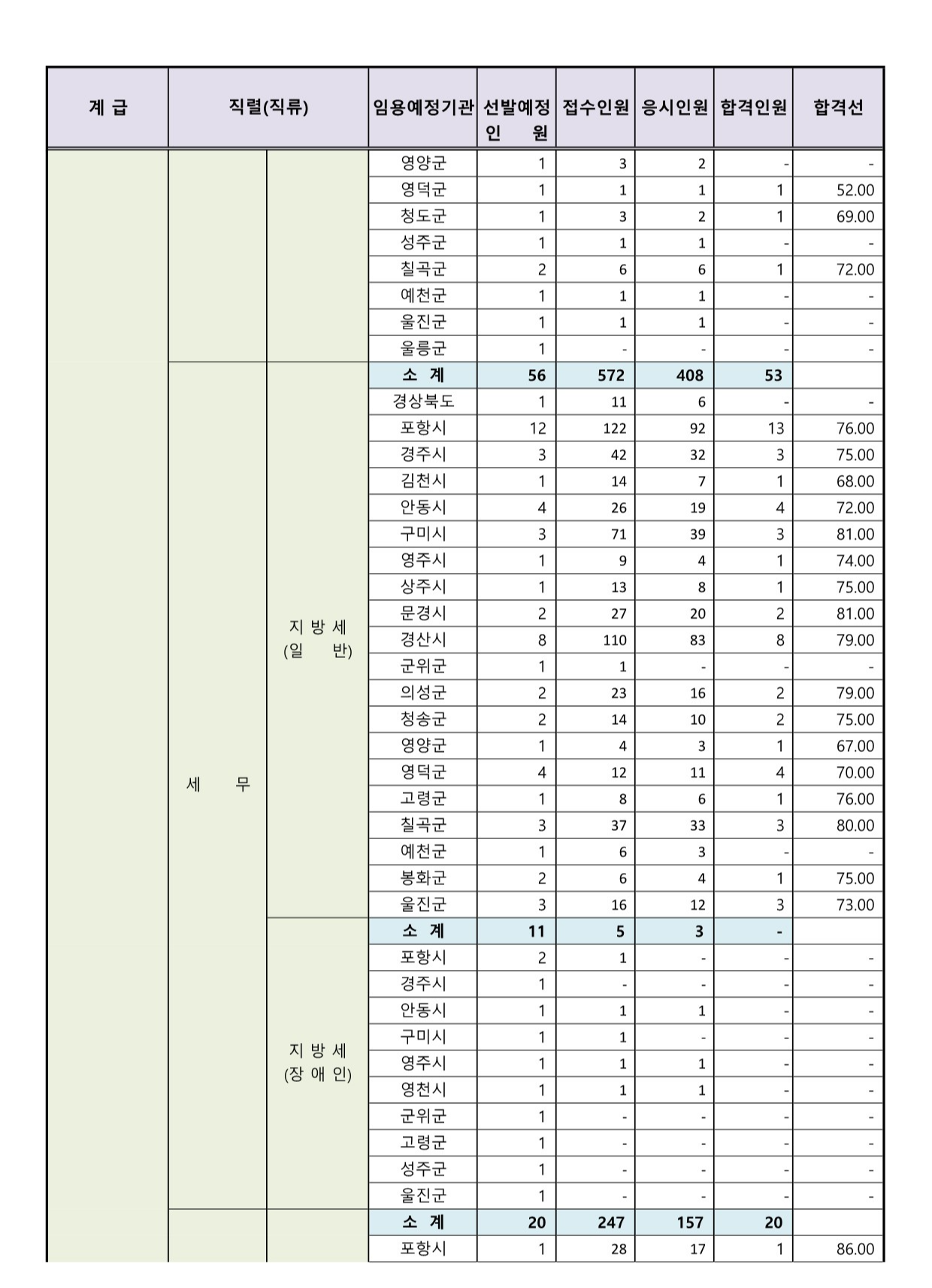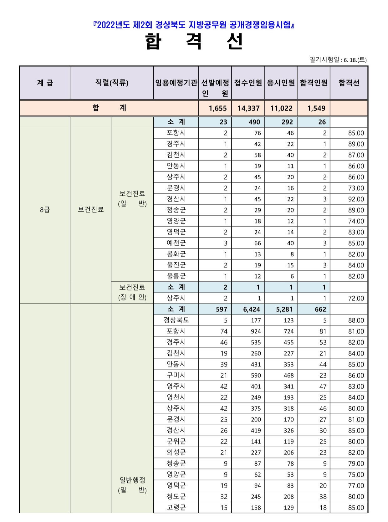 2022년도 제2회 경상북도(경북) 지방공무원(9급 일반행정, 사회복지, 시설 등) 공개경쟁임용 필기시험 합격선(커트라인)2022년도 제2회 경상북도(경북) 지방공무원(9급 일반행정, 사회복지, 시설 등) 공개경쟁임용 필기시험 합격선(커트라인)