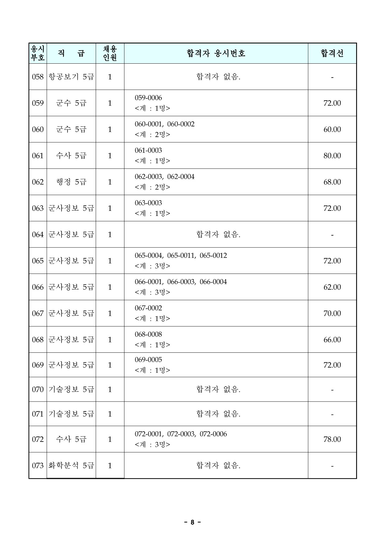 | 2022년 제주 제3회 지방공무원(9급 일반행정, 사회복지, 시설 등) 임용시험 합격선(커트라인) (0) | 2022.12.21 |