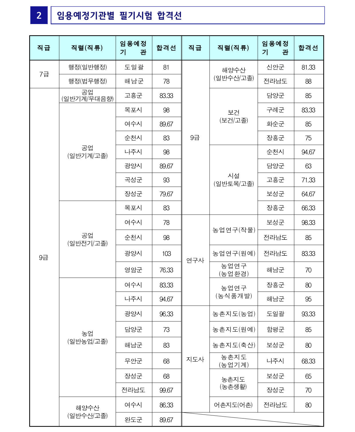 전라남도인사위원회 공고 제2022- 73호2022년도 제5회 전라남도 지방공무원 임용 제1․2차 필기시험 합격자 및 면접시험 시행계획 공고2022년도 제5회 전라남도 지방공무원 임···