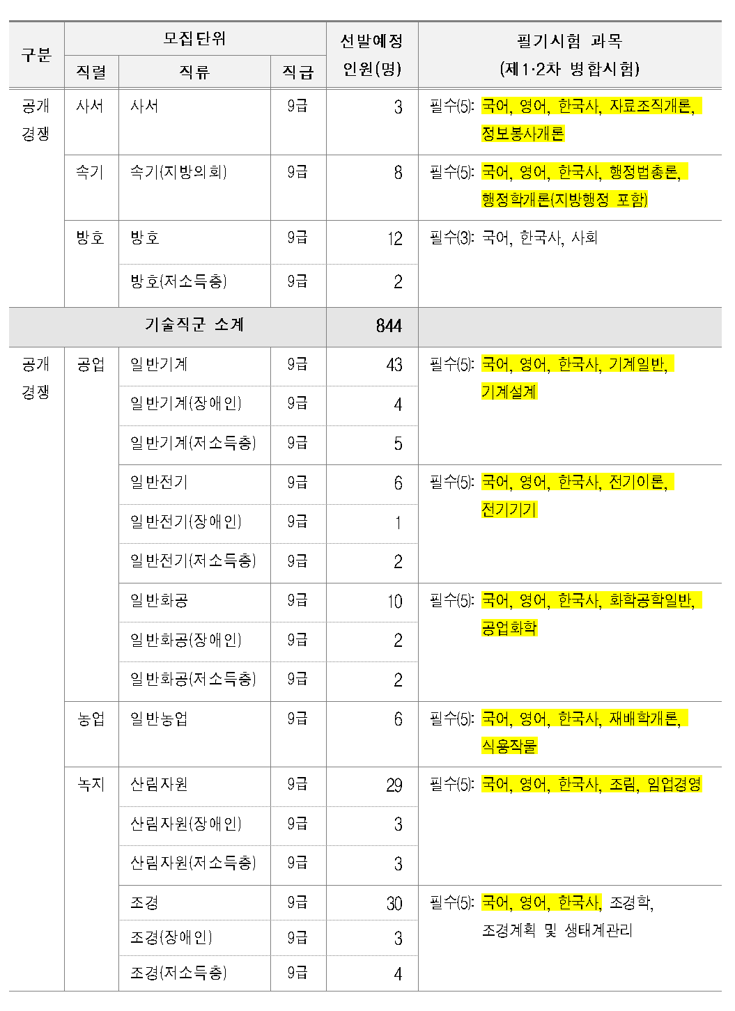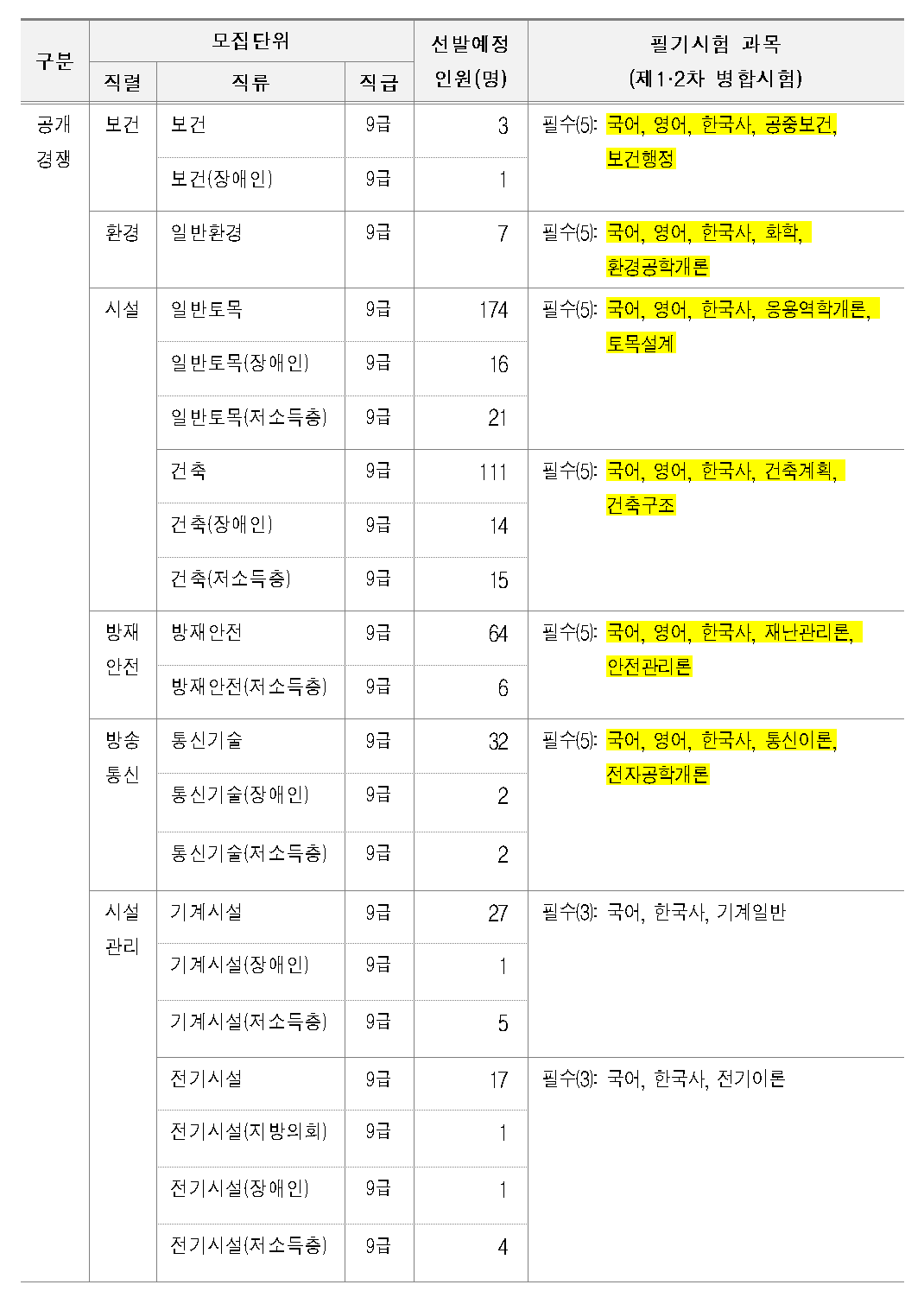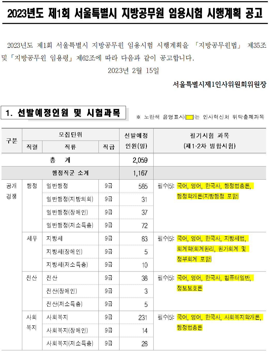 2023년도 서울특별시 8급, 9급 지방공무원(행정, 세무, 사회복지, 시설, 간호 등) 선발예정인원입니다.