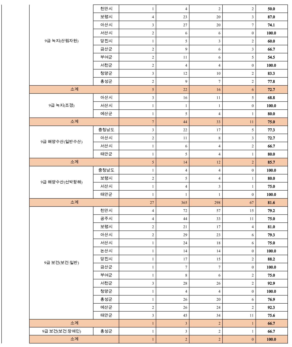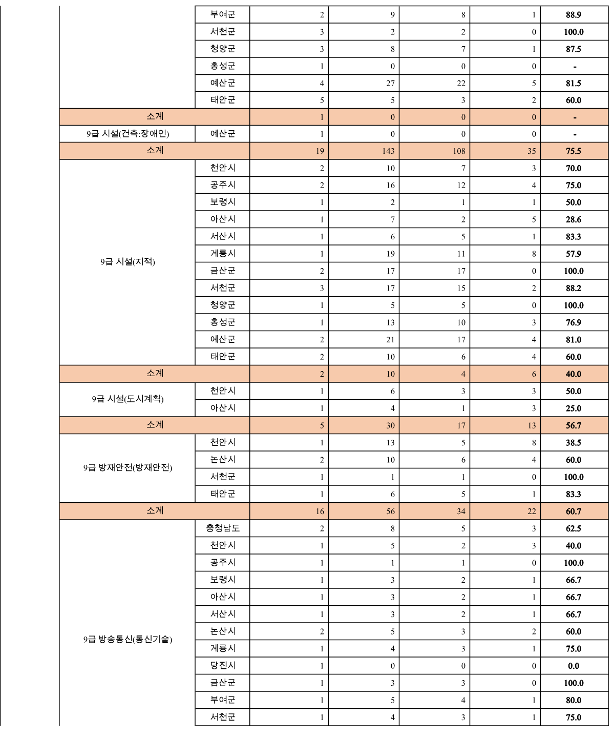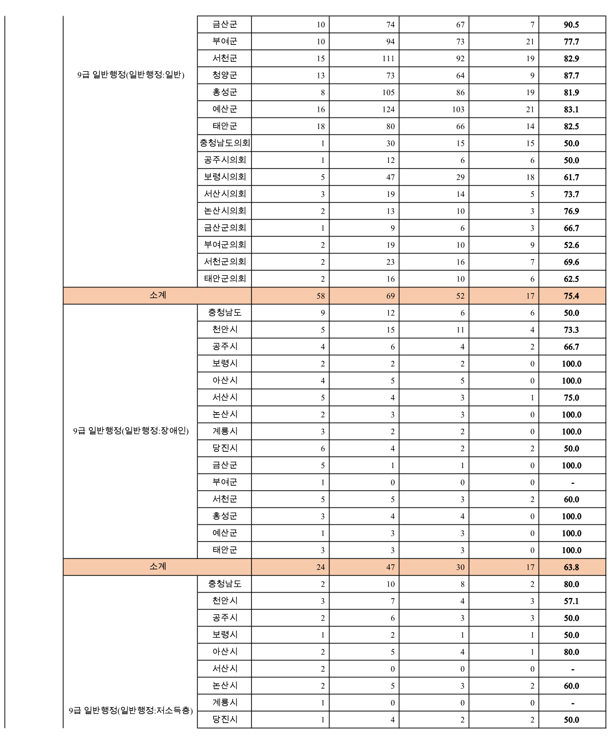 2023년도 제1회 충청남도(충남) 지방직 공무원(9급 일반행정, 세무, 사회복지, 일반토목, 건축 등) 임용 필기시험 응시율입니다.