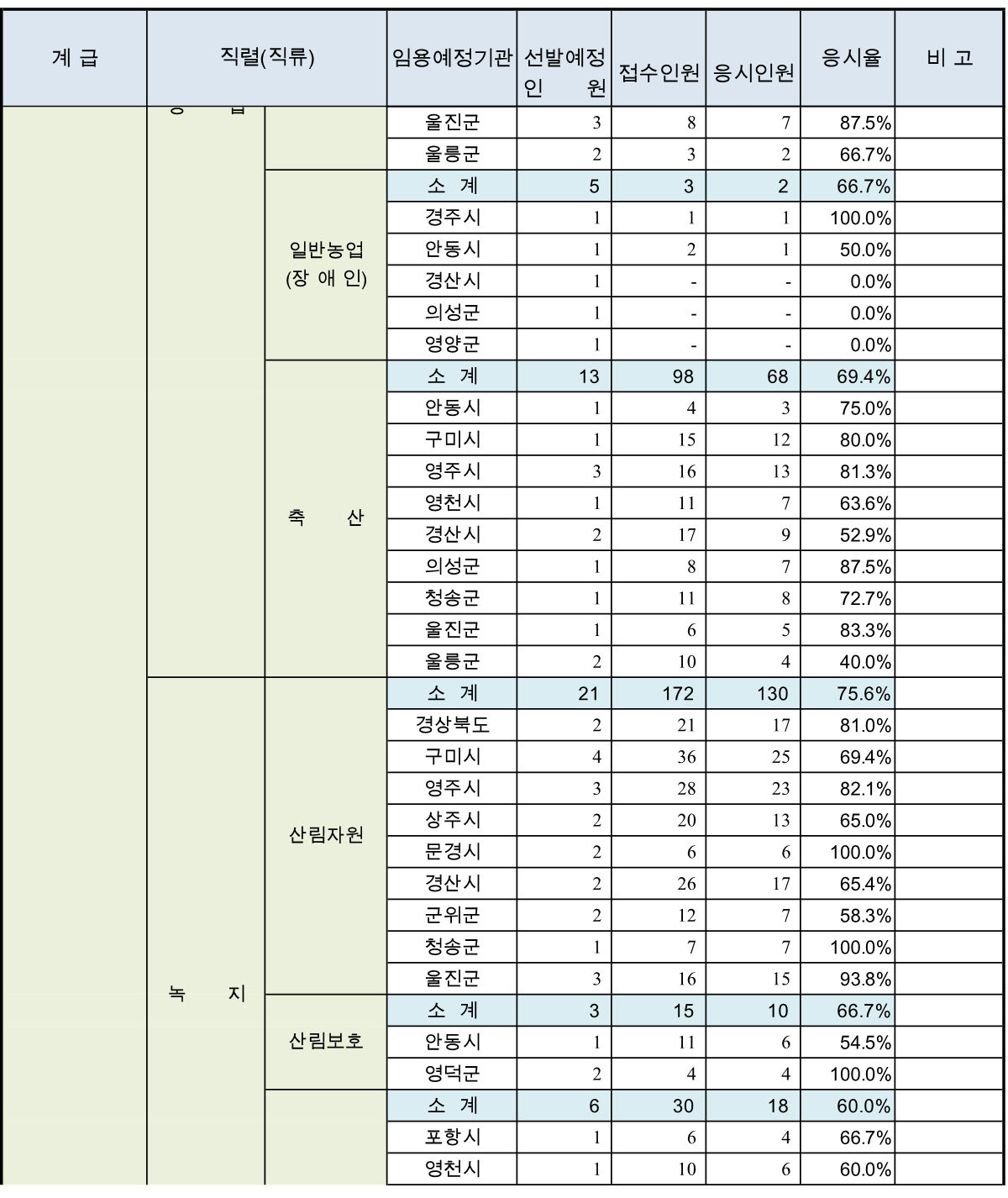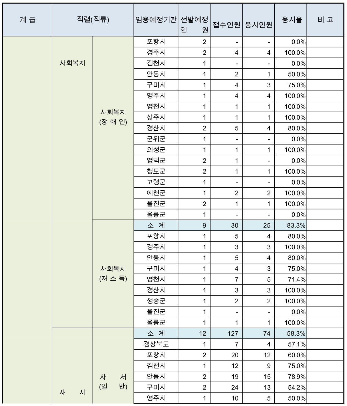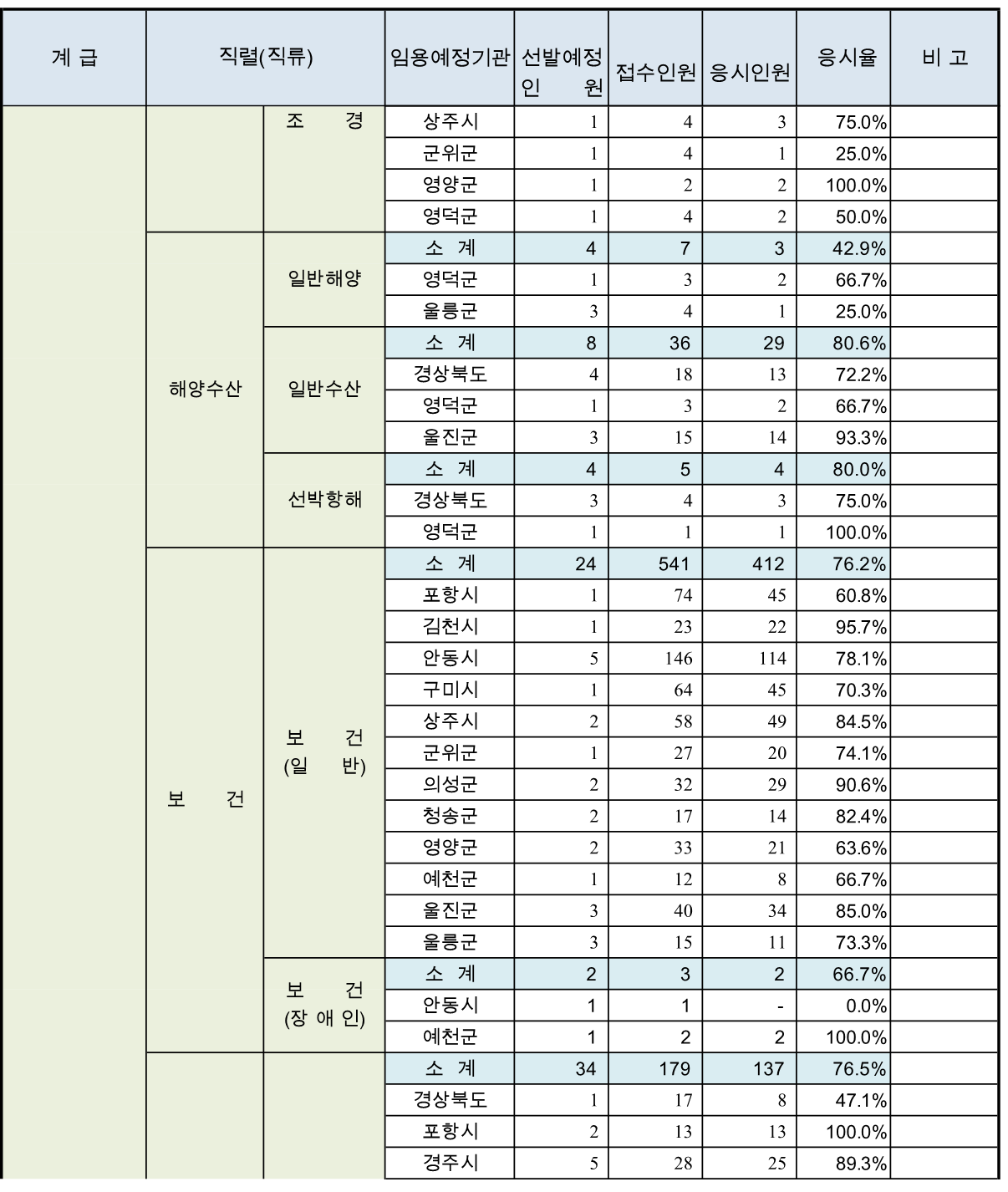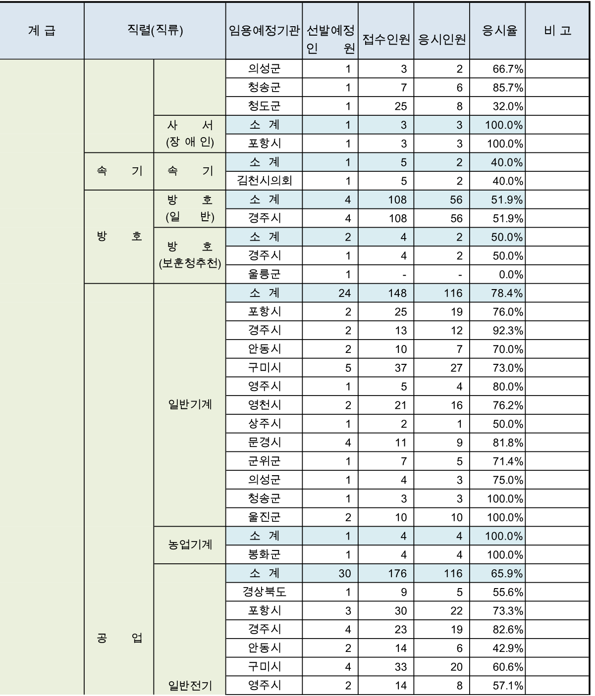 2023년도 제1회 경상북도(경북) 지방공무원(9급 일반행정, 지방세, 사회복지, 일반토목, 건축 등) 임용 필기시험 응시현황(응시율)
