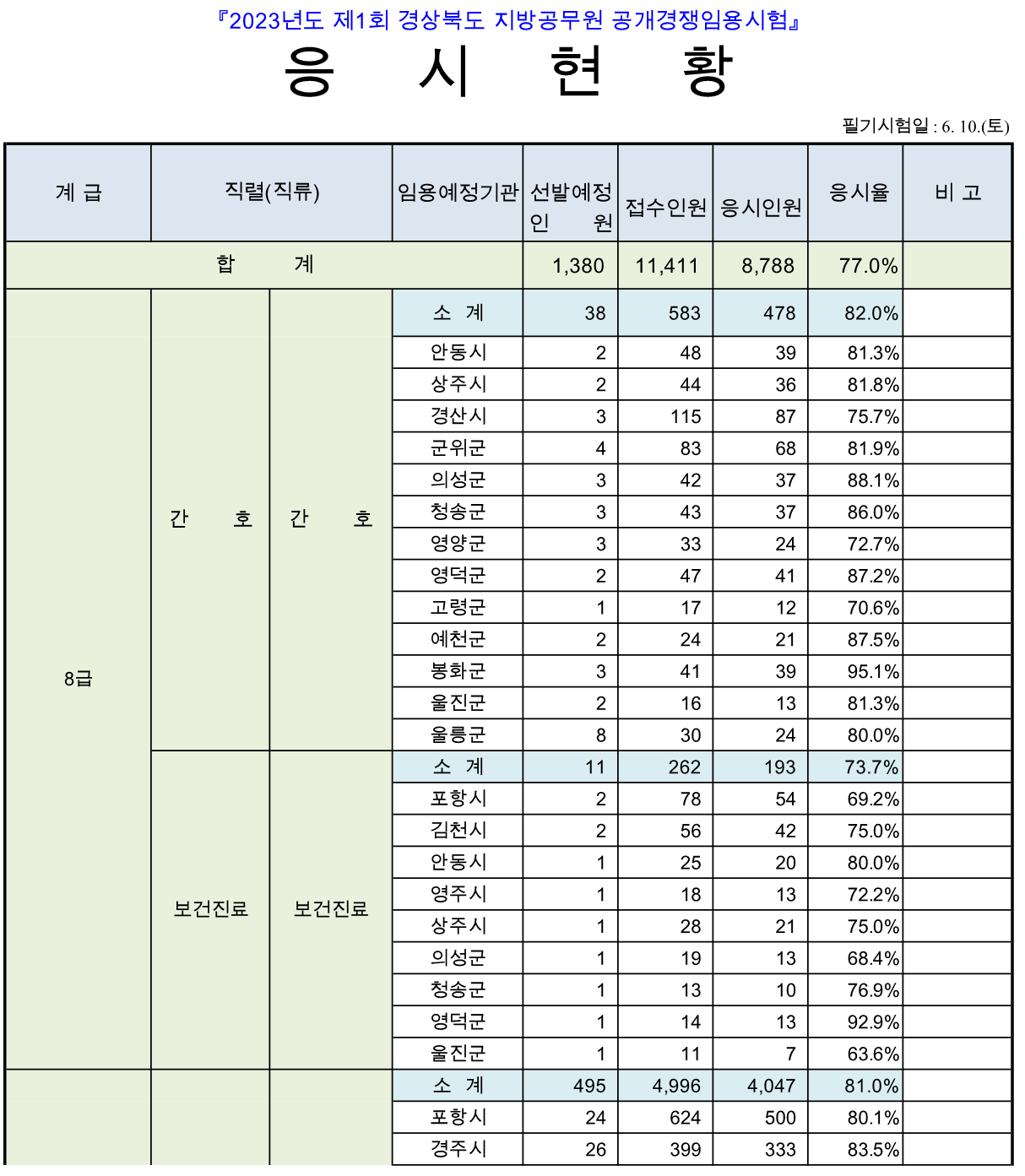 2023년도 제1회 경상북도 지방공무원 공개경쟁임용시험 응시현황입니다.