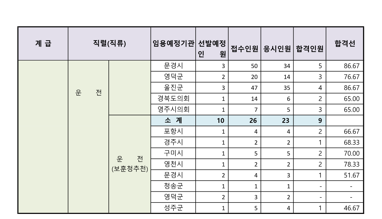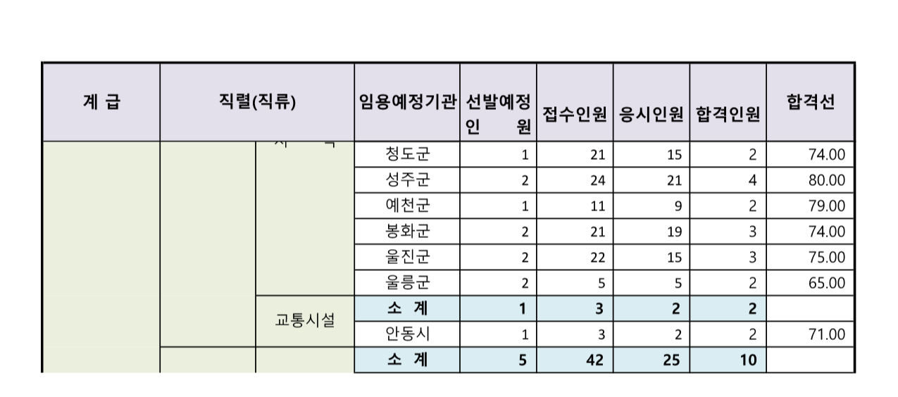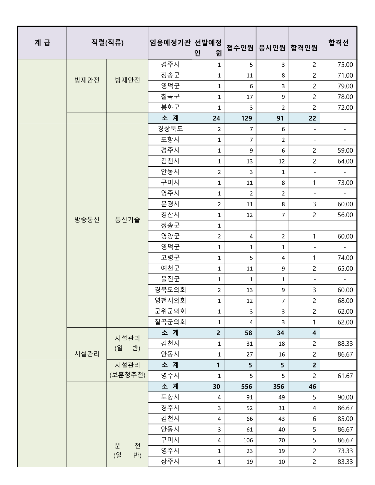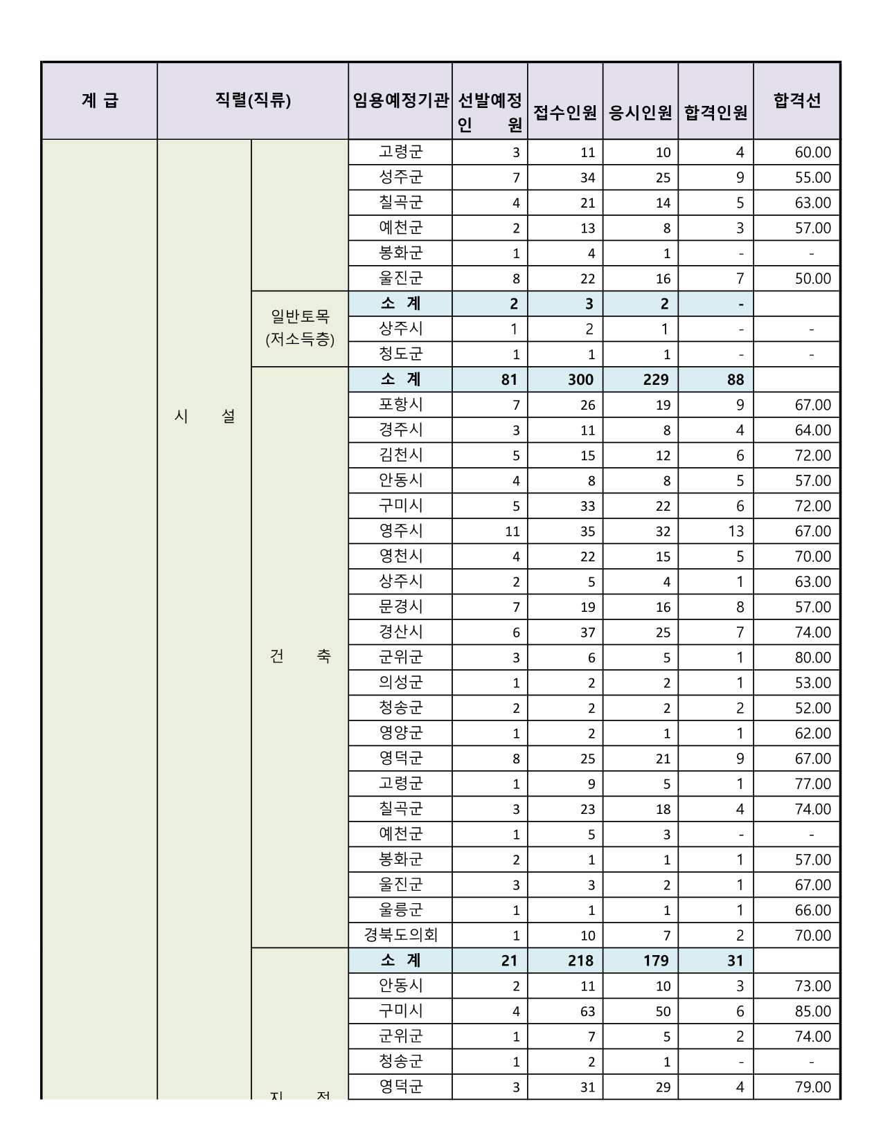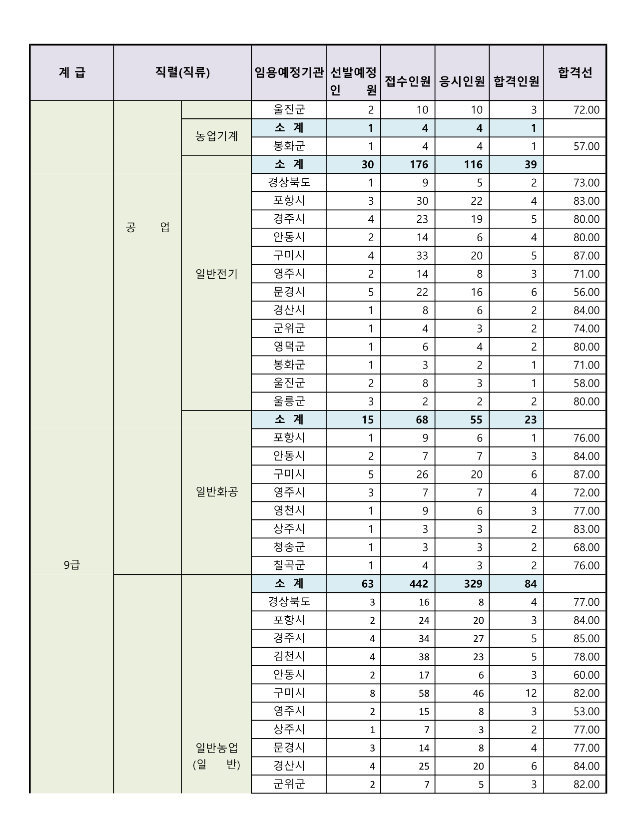 2023년도 제1회 경상북도(경북) 지방공무원(9급, 일반행정, 지방세, 사회복지, 일반토목, 건축 등) 공개경쟁임용시험 합격선(커트라인)