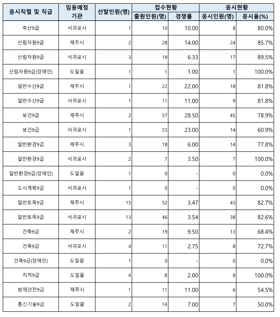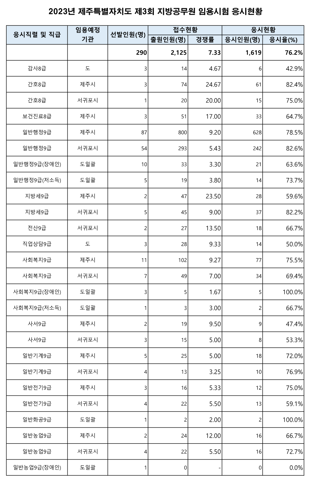 2023년 제3회 제주특별자치도 지방공무원 임용시험 응시현황 - 제주특별자치도 (jeju.go.kr)