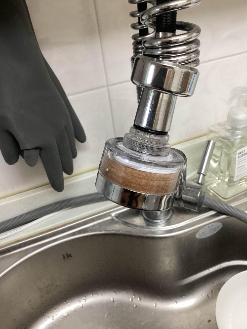 얼마 전 단수 후 물을 틀었을 때 주방 수도꼭지의 필터 색상이 진한 갈색으로 갑자기 변했다.