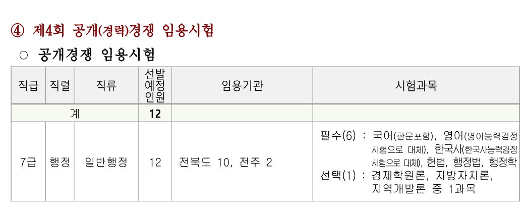 - 7급 일반행정: 10명(전북도 10명, 전주 2명)